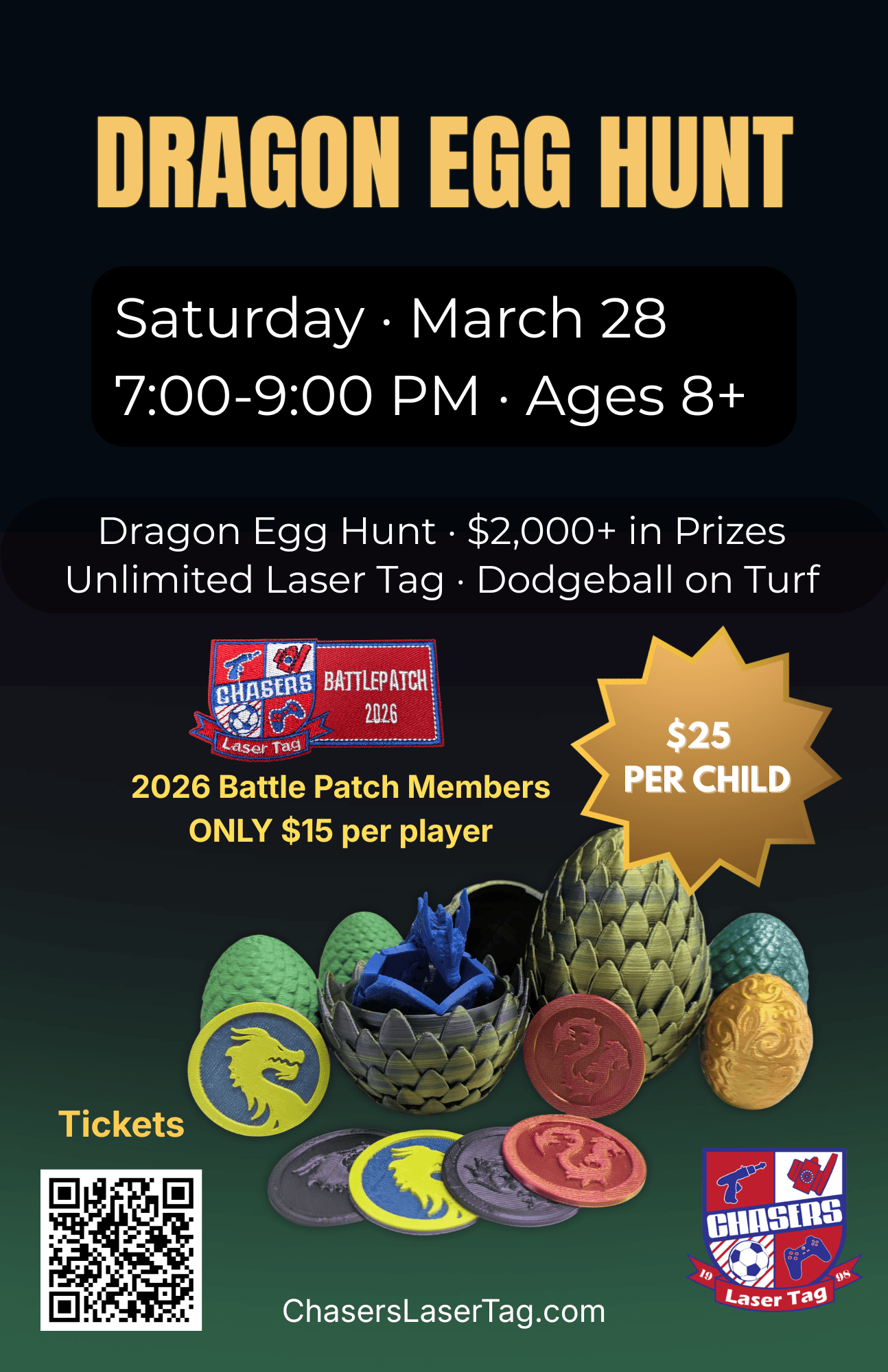 $5 Off any Laser Tag Play Pass on ALL Future Visits to Chasers through December 2026!