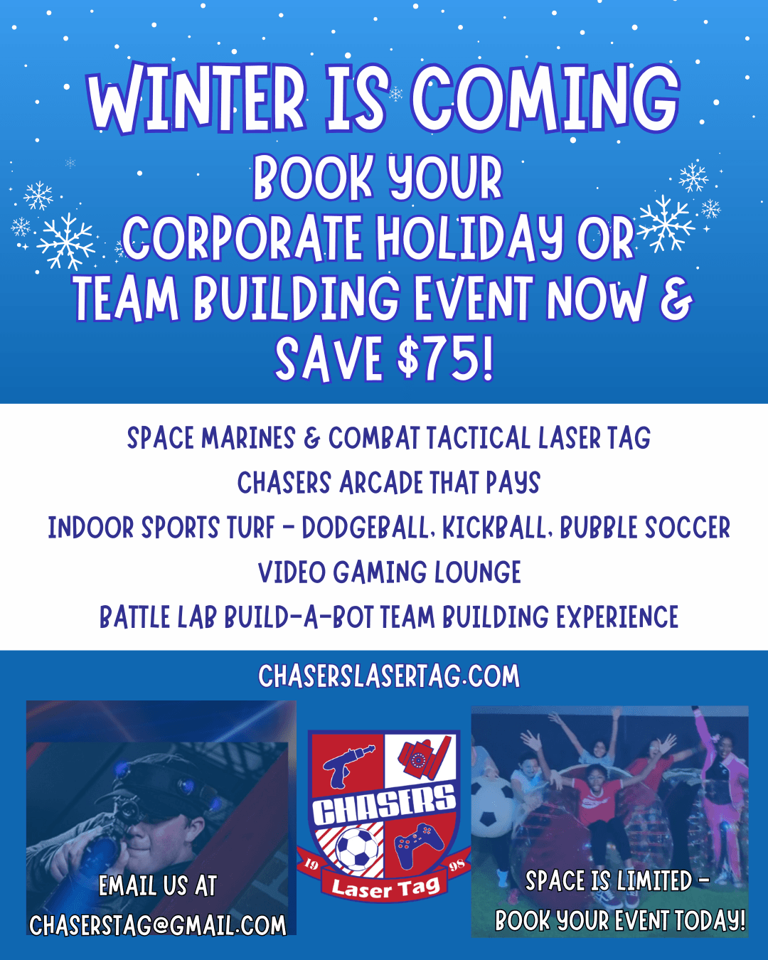 #ChasersLaserTag #Naperville #HolidayEvents #CorporateParty #LaserTagFun #ArcadeAdventure