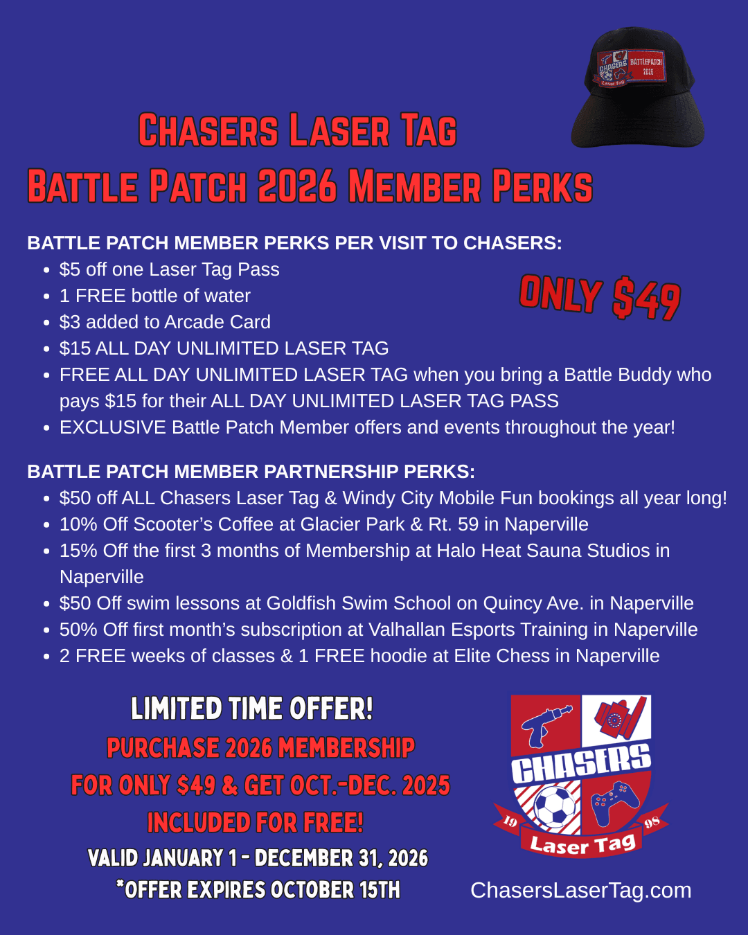Hurry β this Limited Time Offer wonβt last! Pre-purchase your 2026 Membership today at ChasersLaserTag.com π