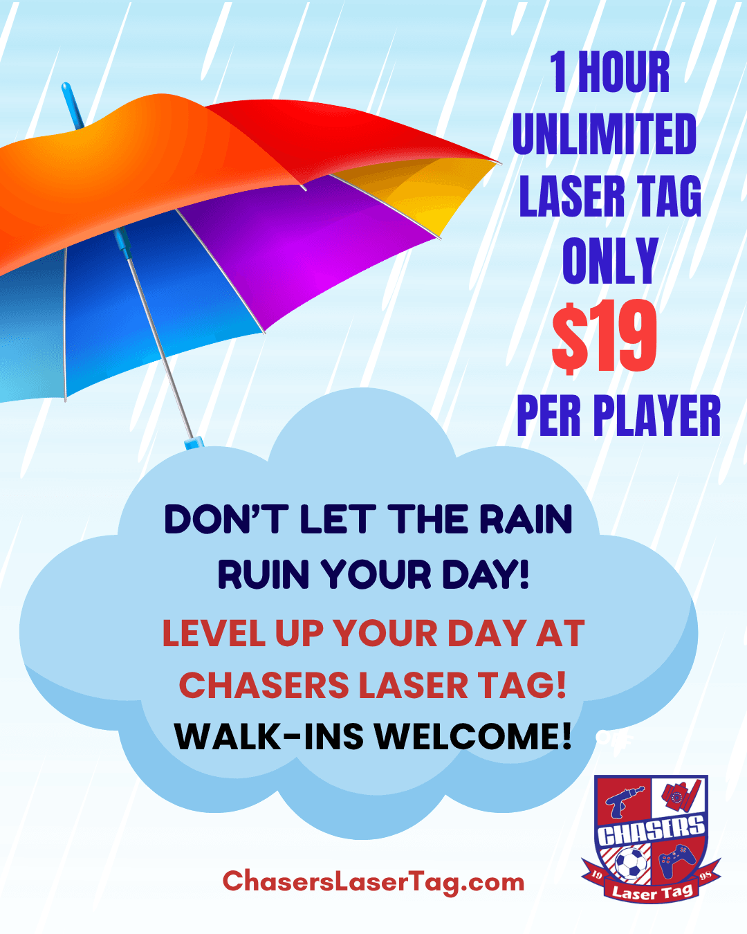 Bring the crew, stay dry, and keep the action going at Chasers Laser Tag