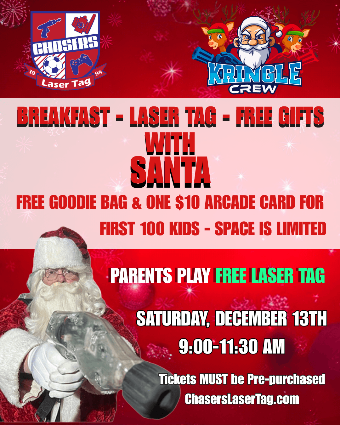 Get your tickets now 👉 https://www.chaserslasertag.com/kringle-crew