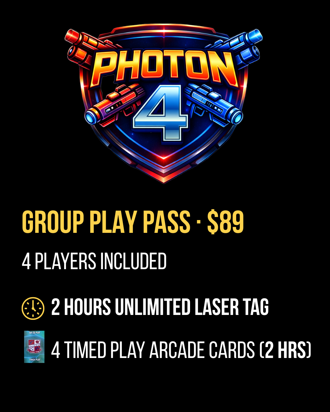 Introducing Chasers new PHOTON 4 Group Play Pass! Gather your friends/family and head to Chasers Laser Tag for epic laser tag battles and thrilling arcade games! ChasersLaserTag.com #ChasersLaserTag #Naperville #groupplaypass #unlimitedfun #lasertag #arcade #weekendplans