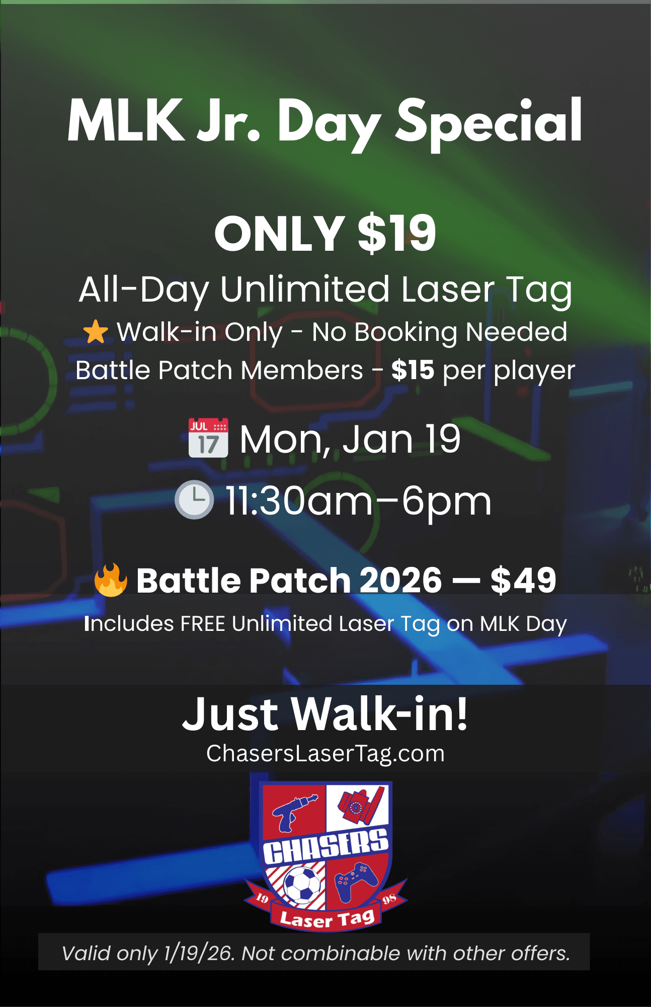 #mlkday#chaserslasertag #naperville #lasertag #familyfun #thingstodoinnaperville #kidsactivities #walkinswelcome #indoorfun #suburbanmomlife #winterfun #teenactivities