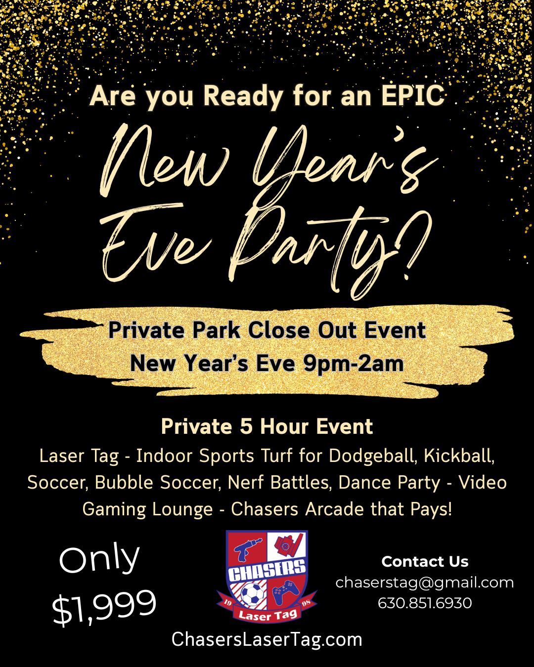 #chaserslasertag #naperville #lasertag #arcade #sportsturf #bubblesoccer #nerfbattles #videogaminglounge #NewYearsEve2025