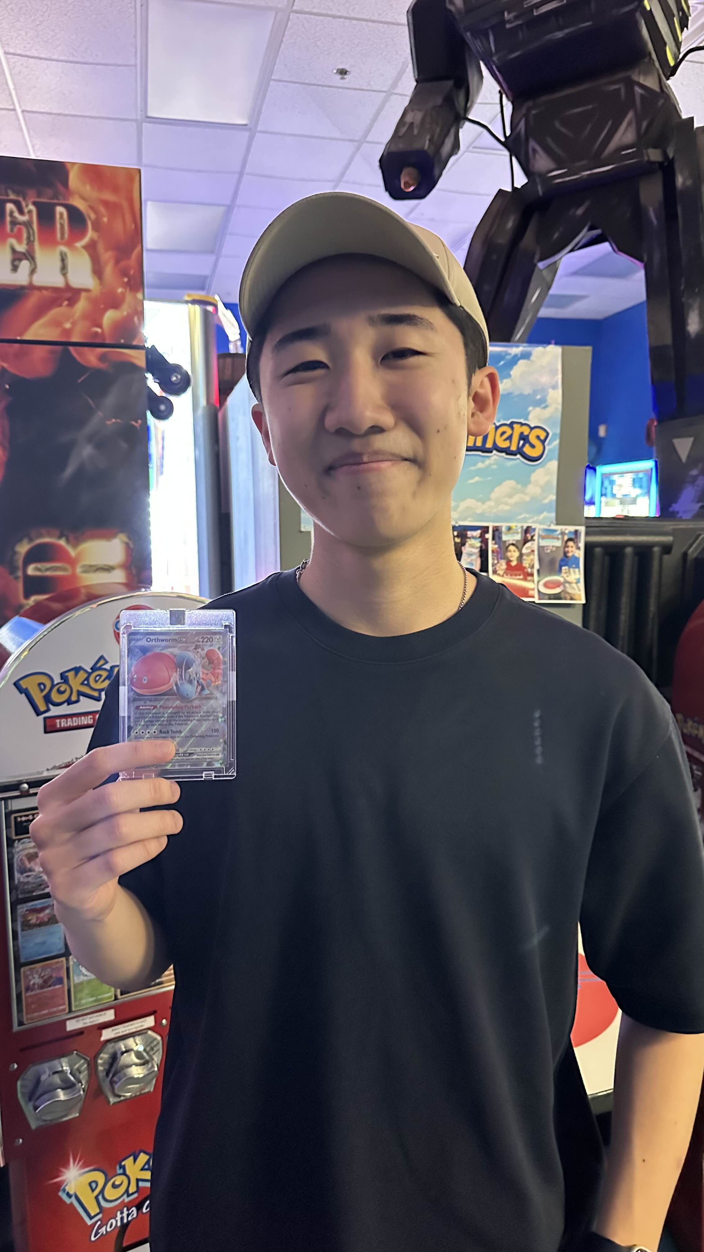 One spin… one card… and this trainer walked away with a nice Orthworm ex pull from the $1 PokeWinners machine at Chasers Laser Tag! 🎴