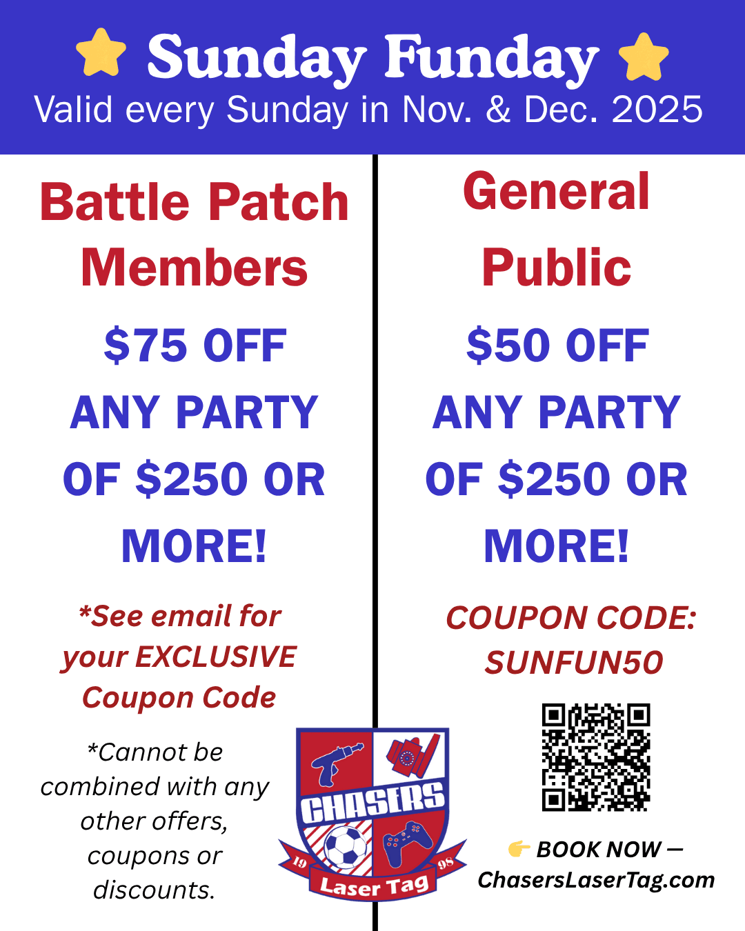 #ChasersLaserTag #SundayFunday #Naperville #PartyTime #BattlePatchMembers