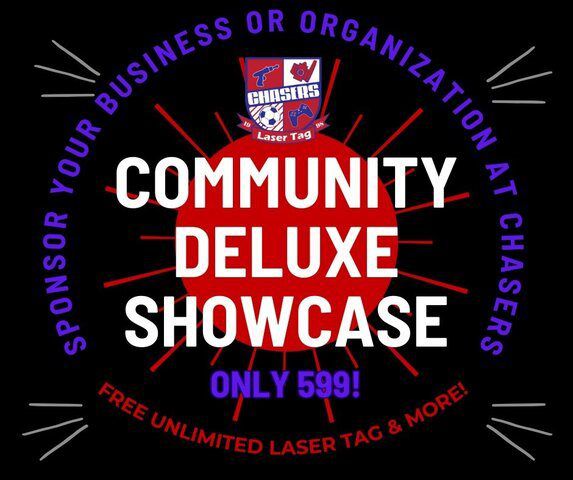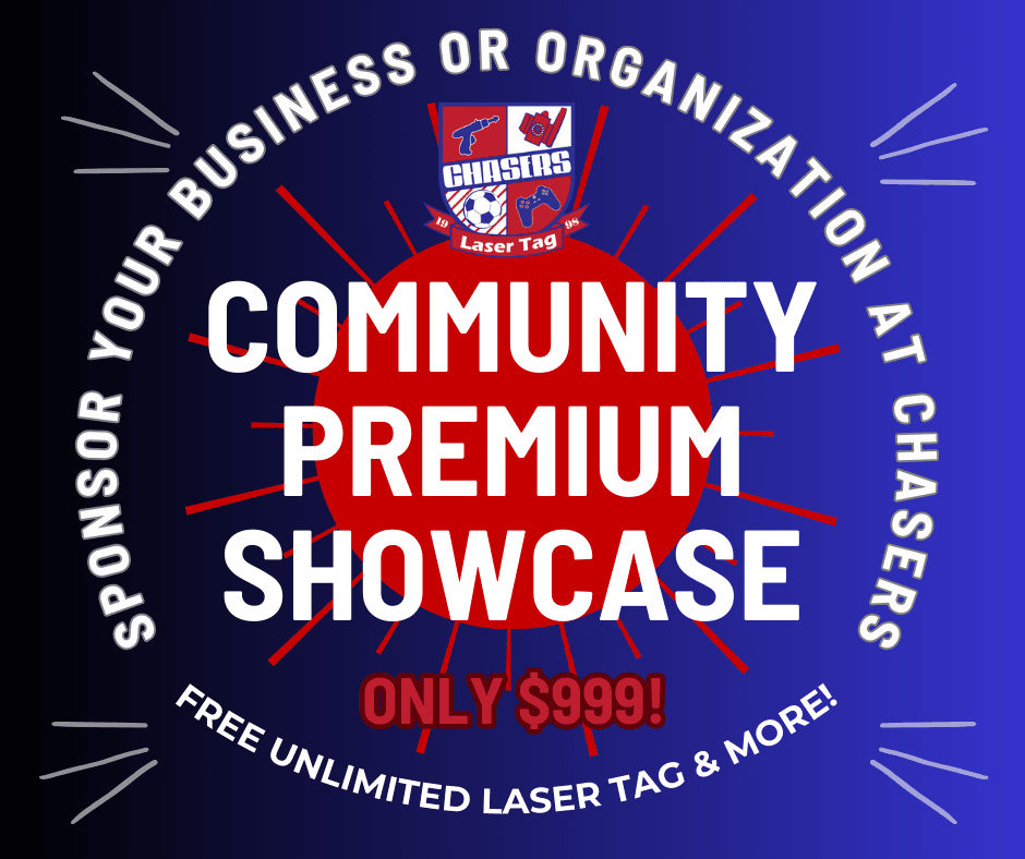SHOWCASE your business or organization in a unique way and STAND OUT from all of the others! Book a Community Sponsored Event at Chasers Laser Tag to PROMOTE your business while ALL of your guests play FREE LASER TAG!