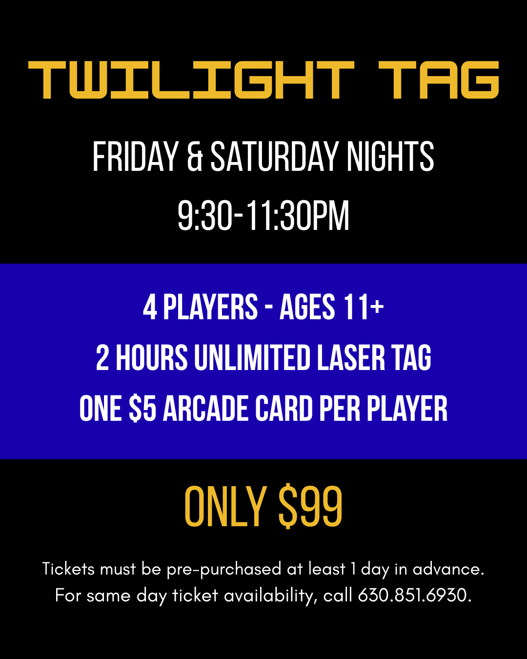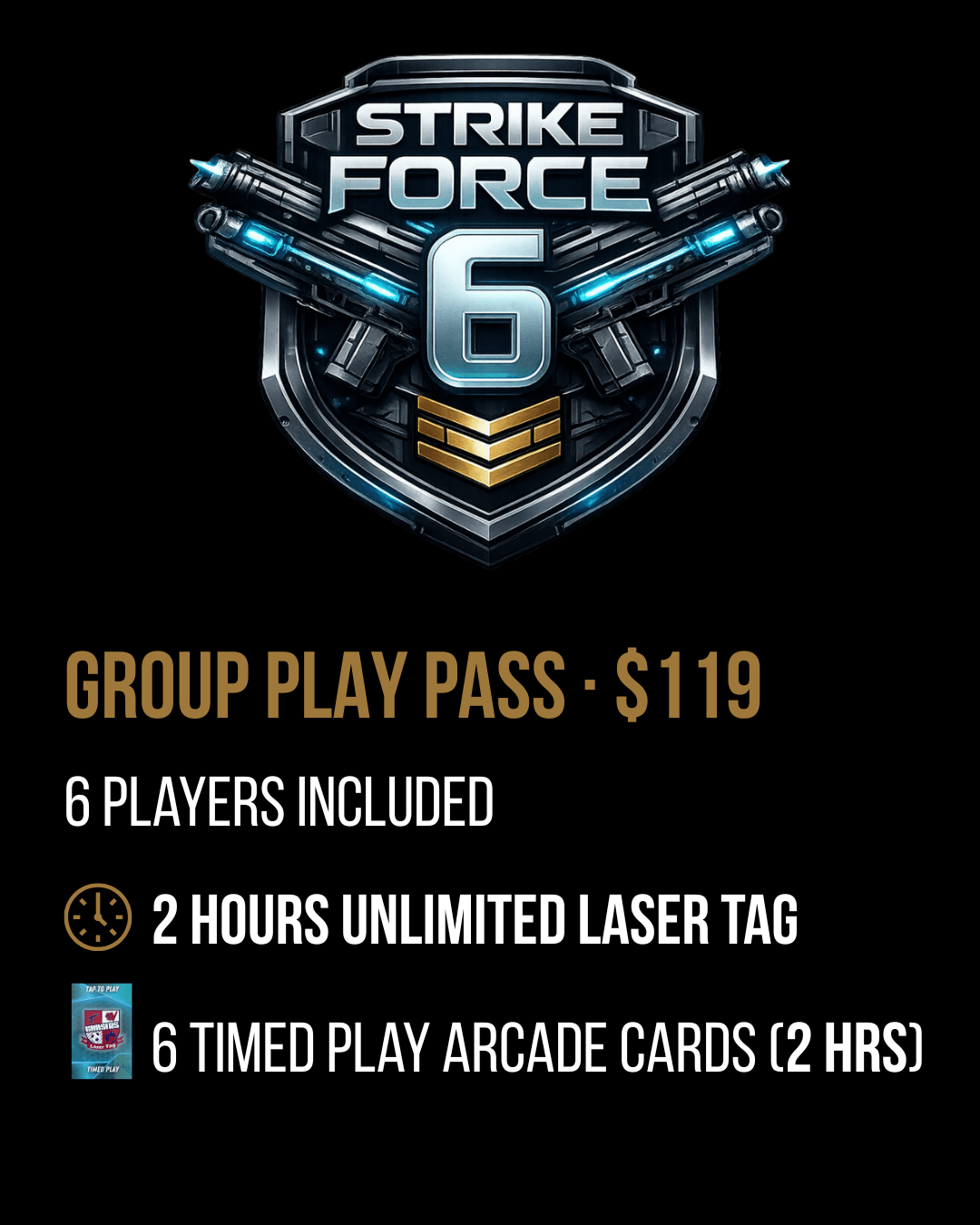 Party bookings take first priority, but pre-purchased passes are placed ahead of walk-in guests without pre-purchased tickets. Priority status may reduce wait time but does not guarantee immediate play. Arriving 15+ minutes late will result in loss of Priority Walk-in Status. Automatic Priority Access Become a 2026 Battle Patch Member for just $49 and receive automatic Priority Walk-In Status—no pre-purchase required. Simply show your Battle Patch when you arrive. Walk-In Play Passes Valid for a specific date, but start times are not guaranteed. Laser tag games begin on the quarter hour and are subject to availability.